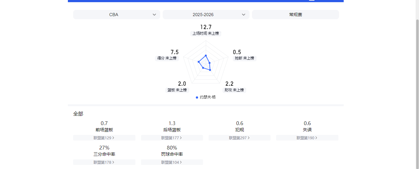 约瑟夫·杨恐要走人的原因是进攻效率低,第一阶段过后,他场均只有7.5分2篮板2.2助攻,投篮命中率仅为40.8%,三分命中率更是低至27.7%。
